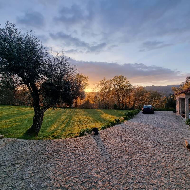 You will stay in a lovely and beautiful small house in nature surrounded by a wooded area 500 metres high in northern Portugal. Besides our own house and the guest house where you will stay, there is a beautiful yurt where we will do process work, among other things. You will also find a large vegetable garden, several fruit trees, chickens and our two lovely dogs. Then, when you walk out of the gate here, you can still choose which way you walk, into the forest or into the valley. So you will definitely experience a kind of holiday feeling.